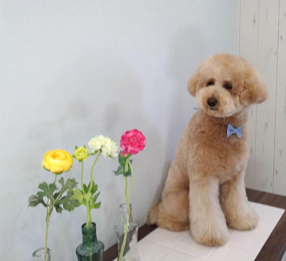 足はブーツカットでお耳は短くふんわり、お顔もふんわりカットです。