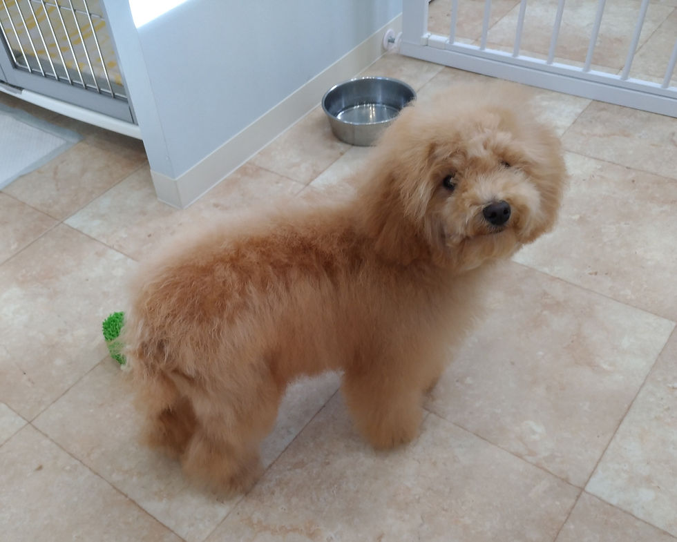 レグちゃん、おうちでもシャンプーや部分的カットをされていました(*^^*)初めてトイプードルを飼ったということでお手入れなど大変だと思いますが、足の裏の毛もしっかりカットしてありましたし、目の上の毛が入らないようにとレグちゃんのお姉さまがカットされていました。そしてご家族からお話を伺ってレグちゃんに対する愛情がとても伝わってきました!