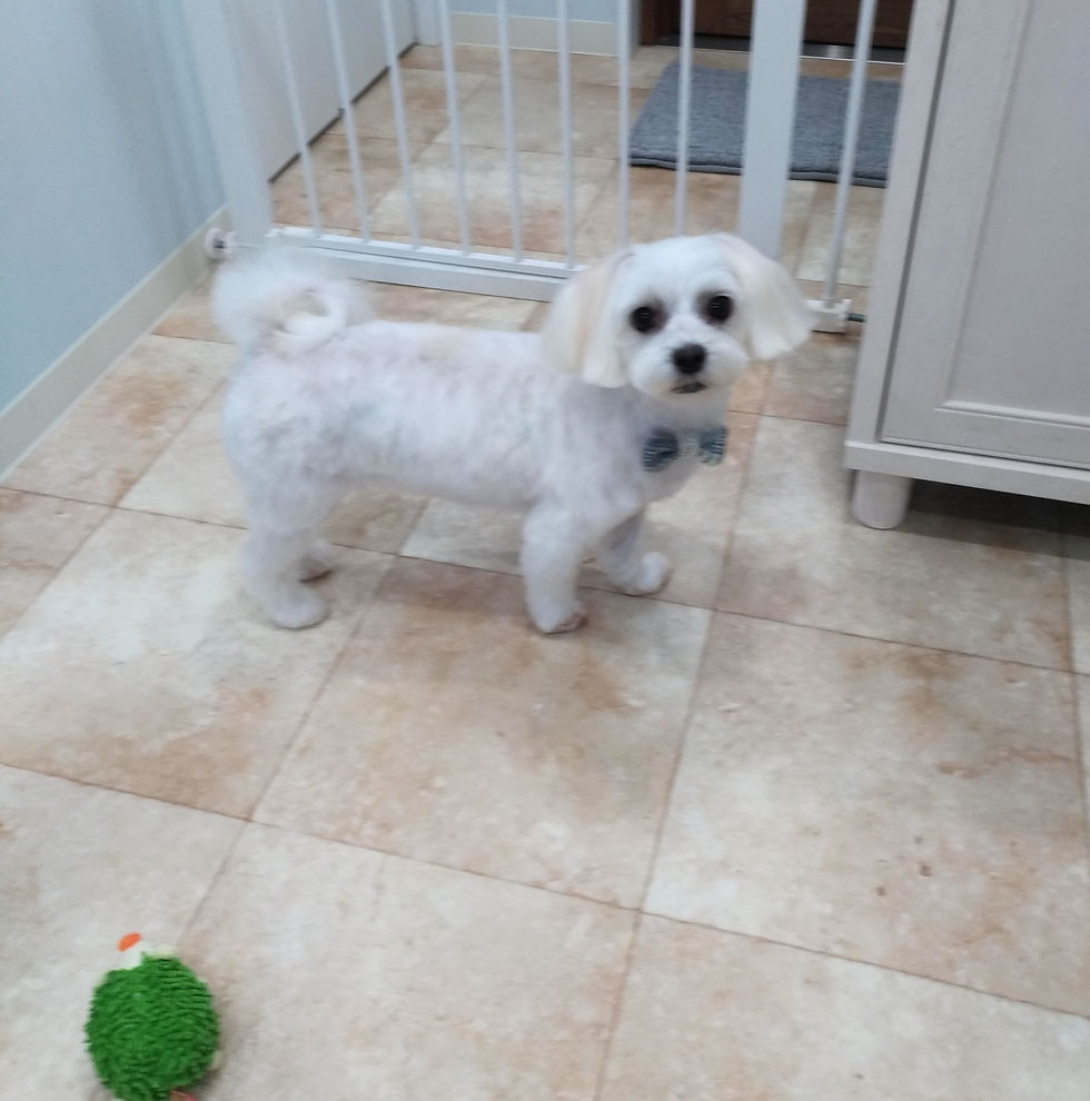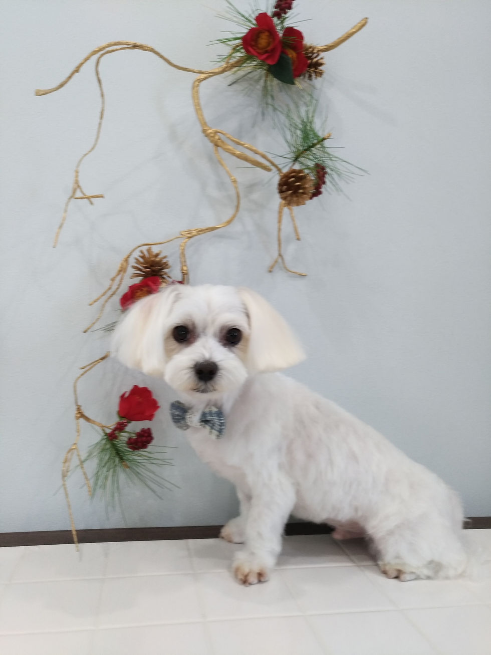 本日ご来店のマルチーズのはるちゃんです。はるちゃんはいつもトリミングに来てくれている、ミックスのさくちゃんのお兄ちゃんです。さくちゃんのトリミングの時にいつも爪きり等に来てくれています。はるちゃんのトリミングにも当店を利用してくださいましてありがとうございます!m(__)m