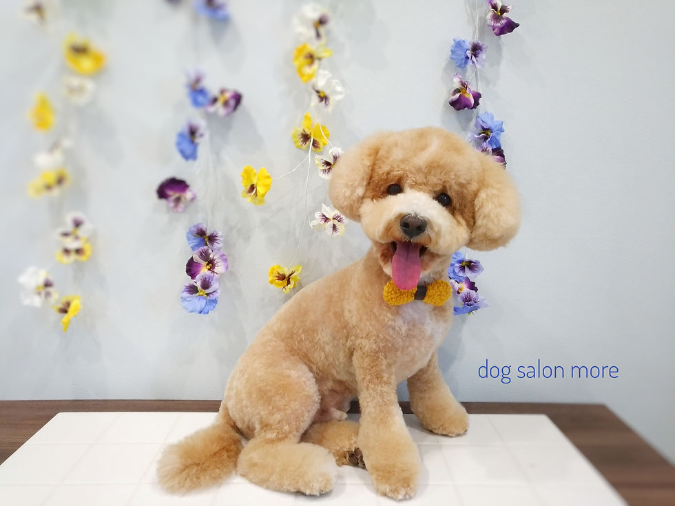 トリミング中、テーブルの上を動いてしまうさくちゃんなので、補助としてトリミングリードを付けています。そのリードを首にかける時、毎回尻尾をフリフリ、少し嬉しそうな表情をしてくれます。たぶんさくちゃんはお散歩に行けると思ってます😅「散歩じゃないんだ、ゴメンねぇ」と一言お伝えはしましたが、トリミングリードを付ける度にさくちゃんに申し訳なく思っていました💦😄