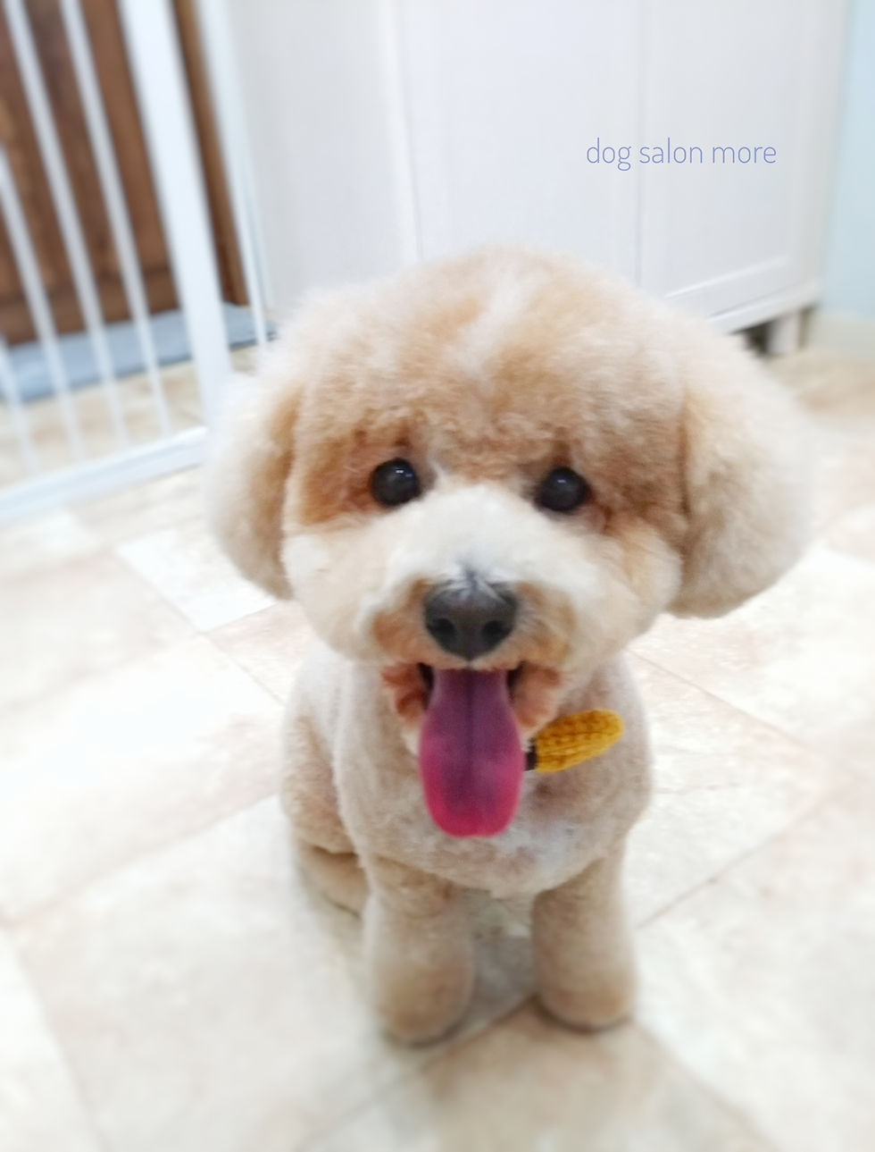 本日ご来店のトイプードルとビションフリーゼのmixのさくくんです✨