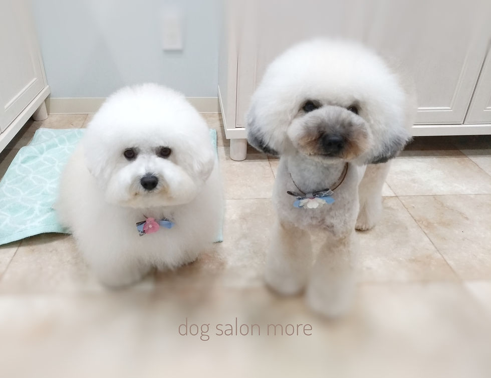 3月5日ご来店のボロニーズのじろくんとトイプードルのさぶろくんです!いつもご利用いただき誠にありがとうございますm(__)m カット内容はじろちゃんはいつもと同じでお顔のみカットでアフロです。足まわりも丸く可愛くなるようにカットしています😊さぶろちゃんは冬のスタイルから夏スタイルに変更していきたいという事で、オパンツカットをやや変化させています。雪溶けで汚れやすいため足のブーツカットは引き続き細めです。そしてふたりとも保湿泡パックでシャンプーです。 今回もさぶろちゃんはご機嫌にご来店♪じろちゃんも着いて早々におやつを食べてくれました!今回もふたりとも安定のお利口さん♡そして、さぶろちゃんの甘えっぷり😊本当にかわいいです✨トリミングが終わった後にお店を覗きに来た、主人と子供が「わぁ♡かわいい~っ」と言っていました😁まるで初めてわんちゃんを見たんじゃないかってくらい我が子はふたりの可愛さに感動してましたよ✨ドアの隙間から覗いてきたので最初は少し驚いていたふたりですが、じろちゃんはすぐに近寄っていって我が子のにおいをかいで確認していました😊小さい子供も問題ないってすばらしい性格ですね~! それではじろちゃん、さぶろちゃんお疲れさまでした!次回のスピードシャンプーもお待ちしておりますm(__)m