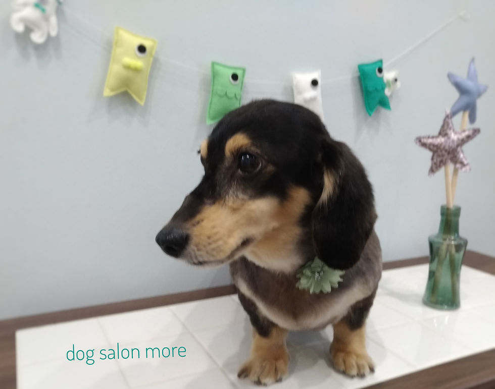 カット内容は体を3㎜のバリカンでスッキリし、尻尾の毛も短めにカット、耳は短くなりすぎないようにバリカン6㎜でカットしています。今回はハーブのシャンプーで洗いました😊