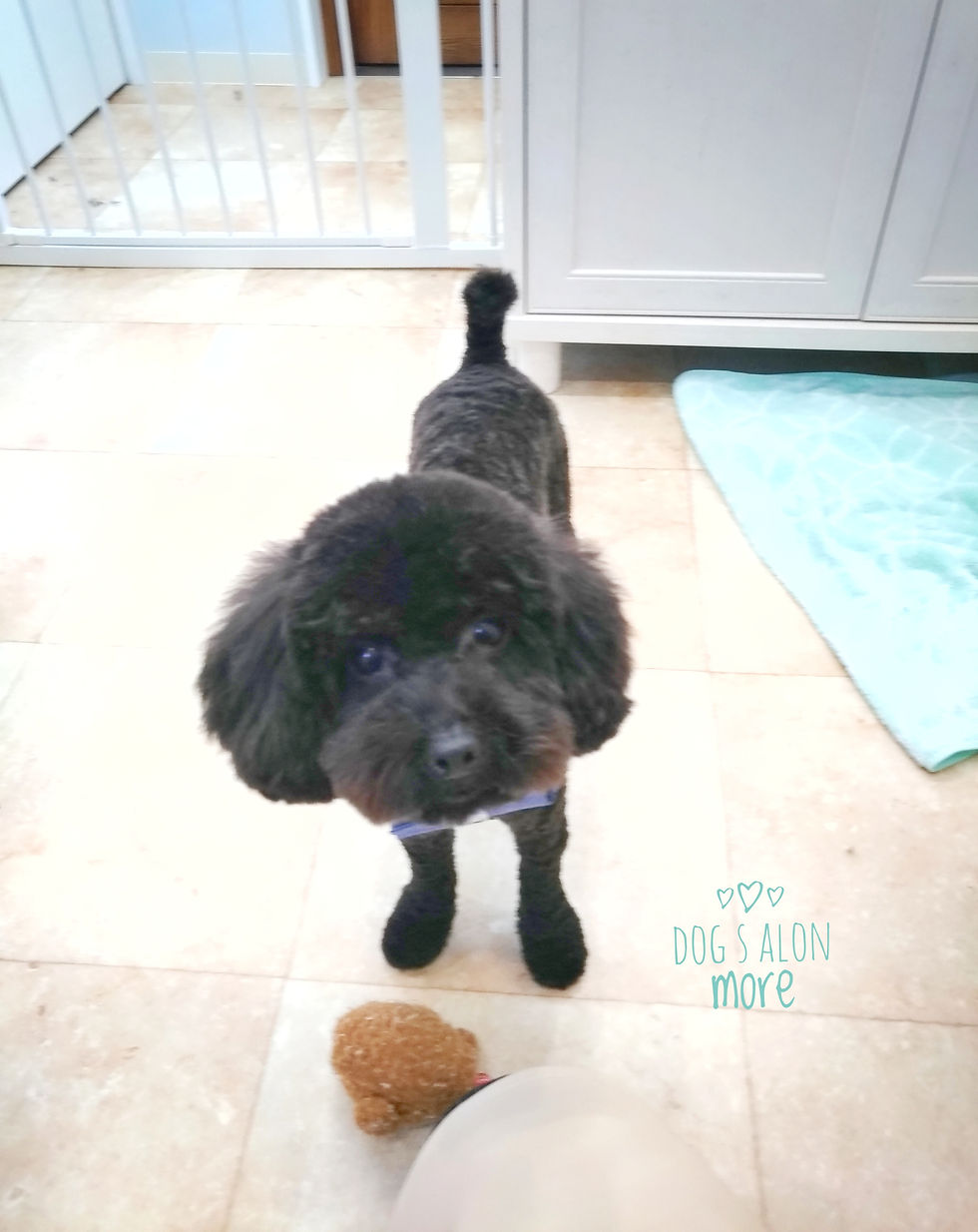カット内容は体をいつもより気持ち短めに5ミリ、足先はショートブーツ風に。お顔はテディベアカットです。