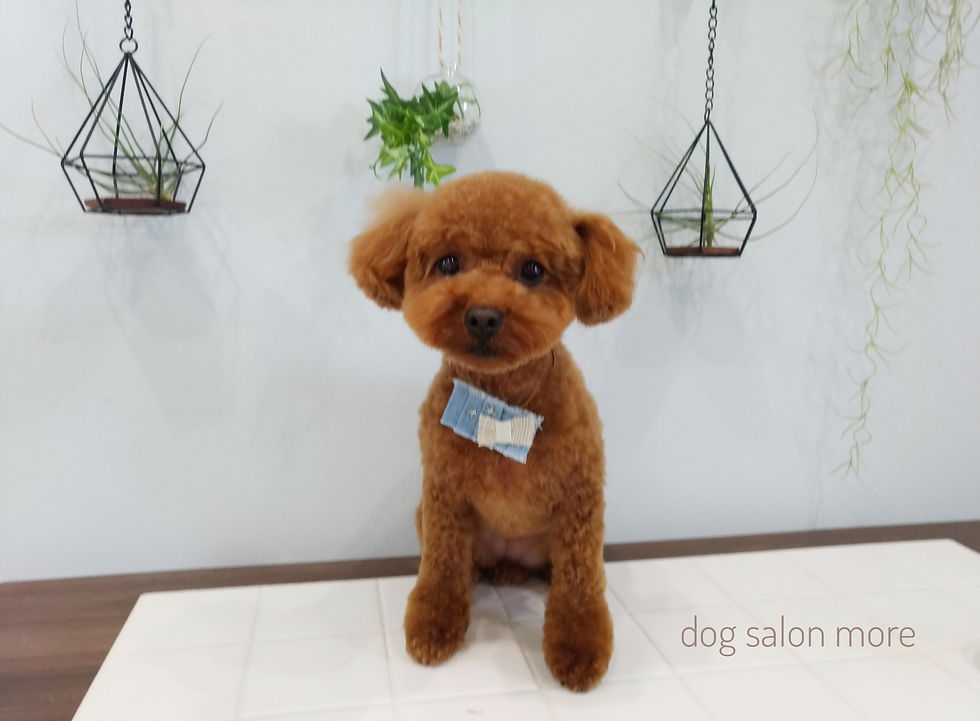 ひなちゃんはまだ1歳半のわんちゃんでトリミングにまだ慣れていたいためテーブルの上であちこち動いてしまうのでトリミングリードをして進めていきました。途中ひなちゃんが苦手な部分はお互いの安全に配慮して素早く行いました。カットの後半では少し眠くなってウトウトする場面も😁お顔のカットも少し嫌がることはありましたが最後まで頑張ってくれたので、より可愛いひなちゃんになりました!それではひなちゃんトリミングお疲れ様でした✨またのご来店をお待ちしておりますm(__)m